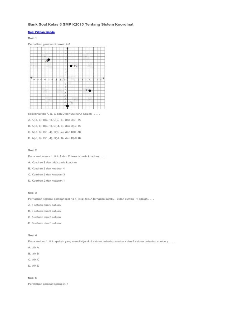 Bank Soal Kelas 8 Smp K2013 Tentang Sistem Koordinat Materi Soal Dan Pembahasan Lengkap Sd Dan Smp from 4.bp.blogspot.com Maybe you would like to learn more about one of these? Check spelling or type a new query. We did not find results for: Soal ulangan koordinat kartesius kelas 8.
